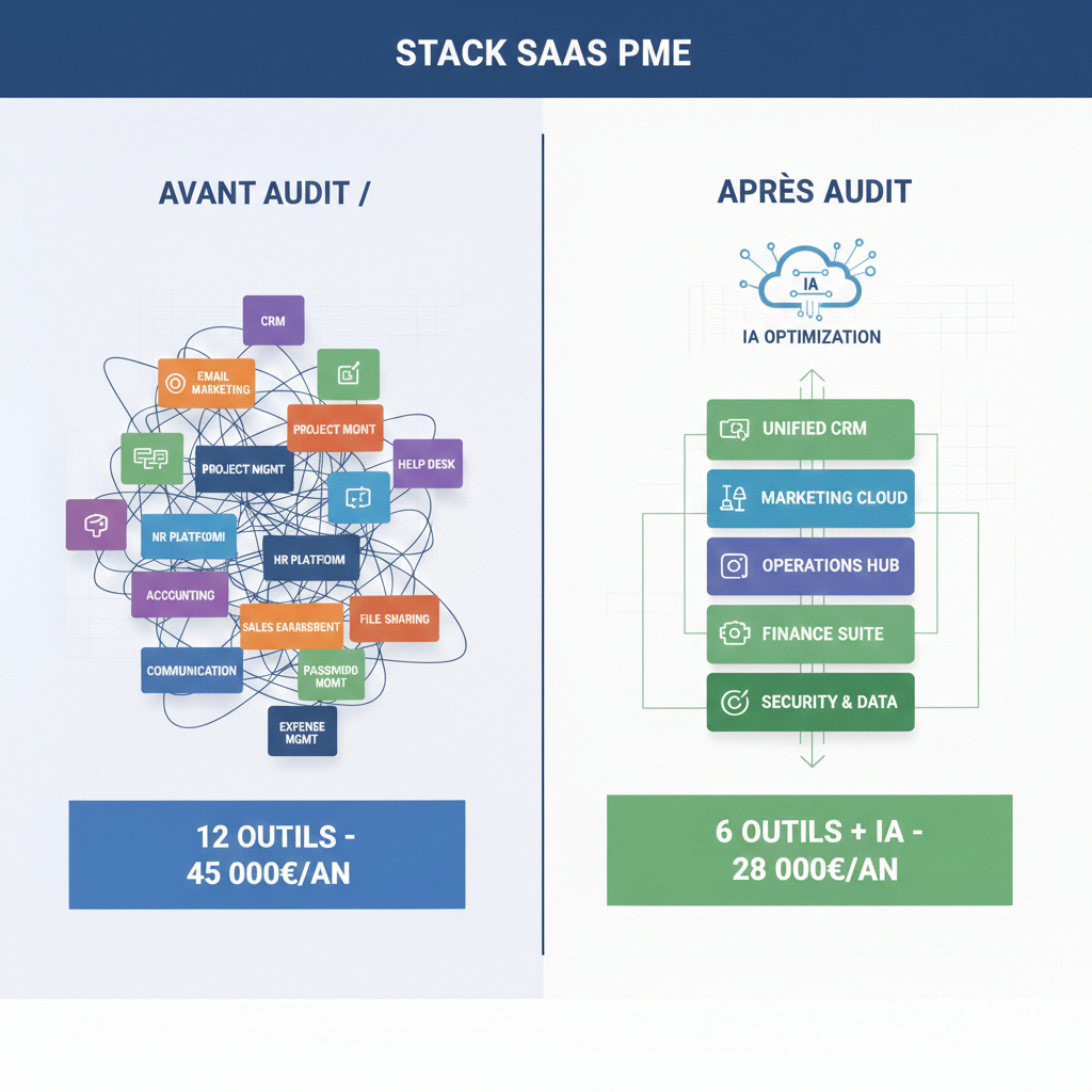 Un audit IA + logiciels SaaS, c’est identifier les outils inutiles, ceux que l’IA remplace, et ceux qui manquent.